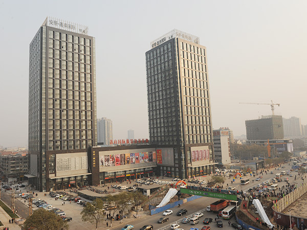 義商國(guó)際由三部分業(yè)態(tài)組成:第一部分為商業(yè),由5層裙樓和地下1層組成,包括購(gòu)物中心、臨街商鋪、餐飲娛樂等,商業(yè)面積為36407㎡。第二部分為公寓(A座)及寫字樓(B座),由兩棟23層(6-28層)主樓組成,建筑面積為65109㎡,其中公寓452套,寫字樓224套。第三部分為地下-2層停車場(chǎng),地下-3層人防工程(戰(zhàn)時(shí)可容納4000人的人防工程,平時(shí)為停車場(chǎng))組成,建筑面積18582㎡。